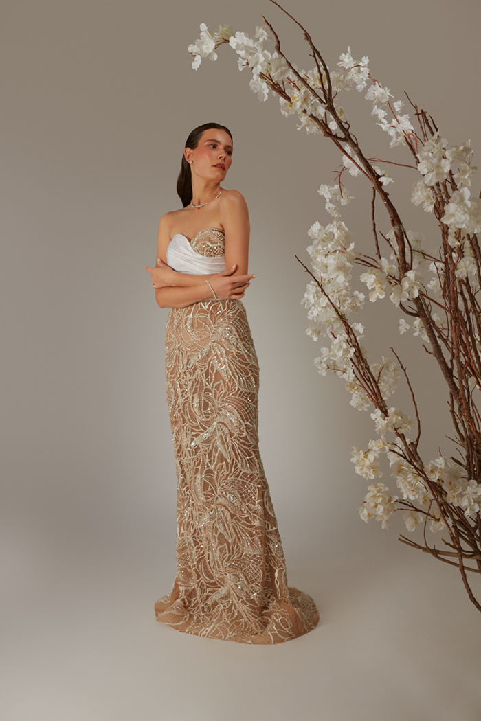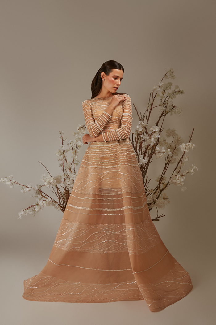 The collection is inspired by the architectural sight of the city from atop. All the geometrical defined lines -sometimes voluminous- symmetrically and asymmetrically intertwined. All while enriched with handcrafted, custom-made fine beads breathing life into the urban springs.